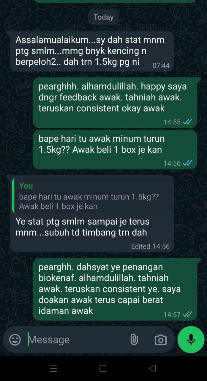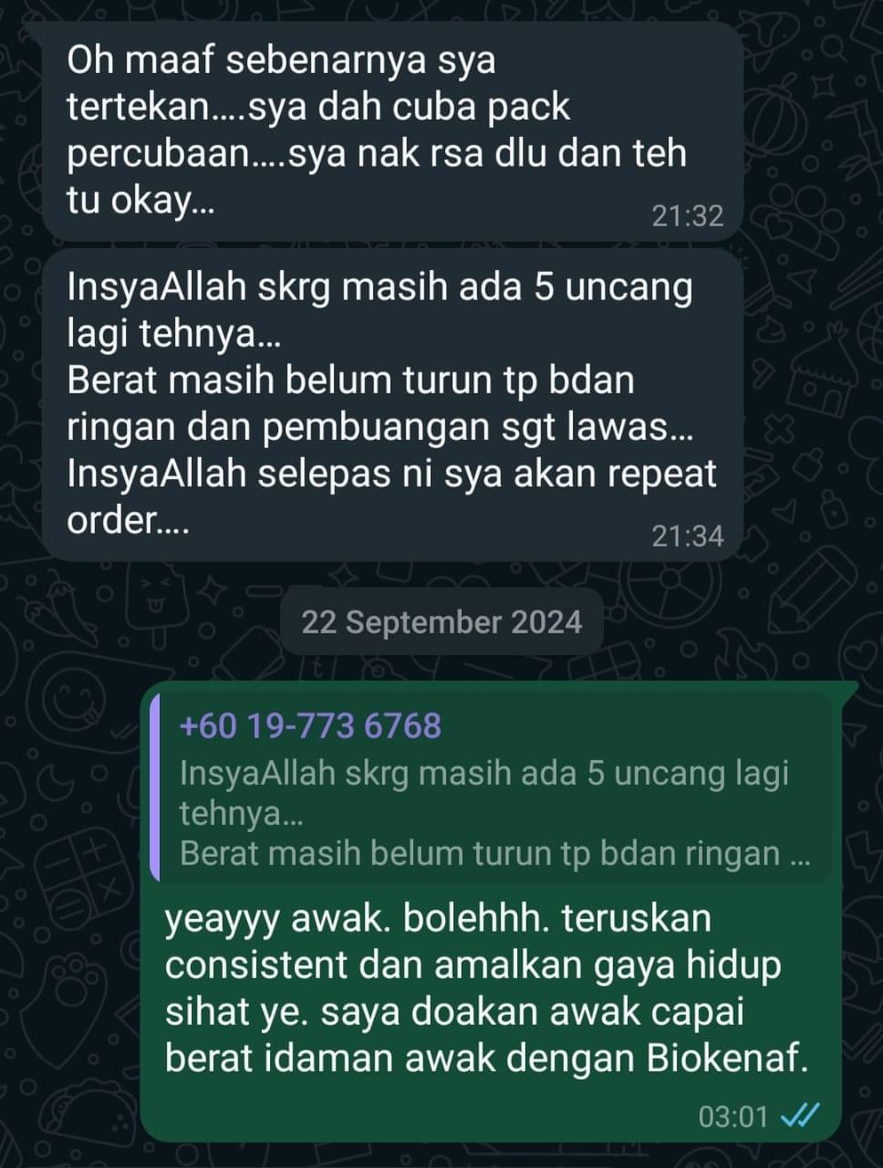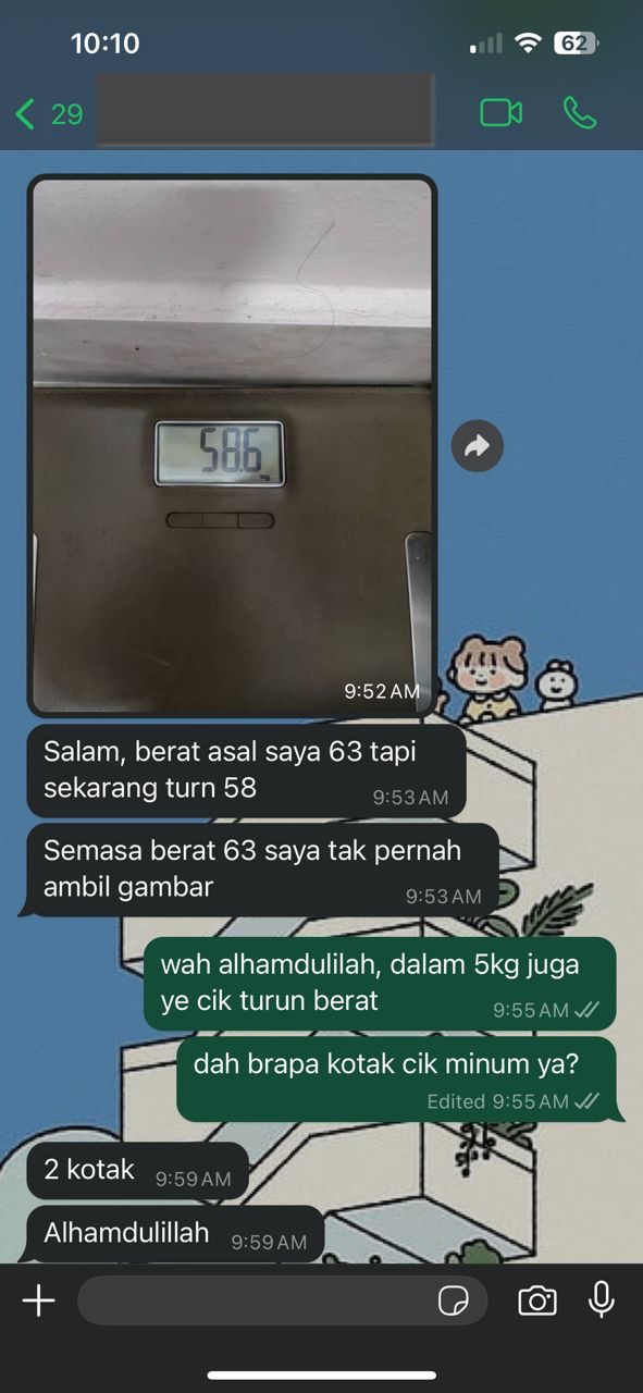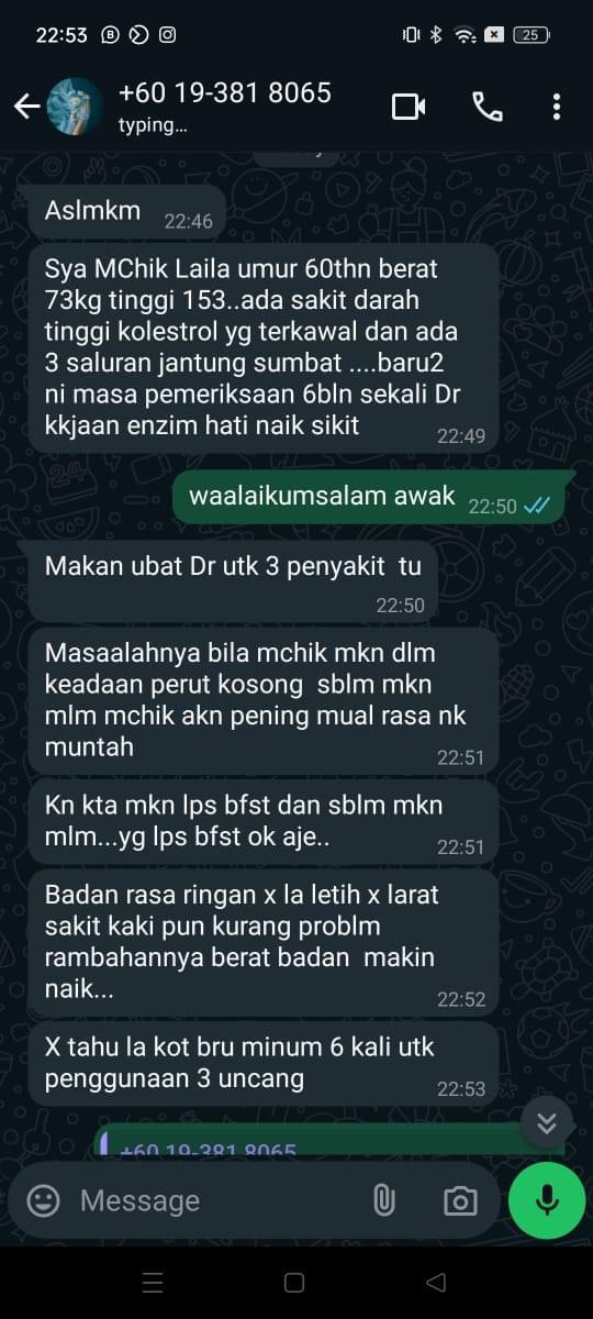 Puan Azmah teruja kongsi pengalaman buah pinggangnya yang tinggal 1 berfungsi efektif semula. Berat turun 10kg, kencing tak lagi berkapuh, bengkak kaki surut, & tiada lagi sakit kaki bila berjalan jauh.