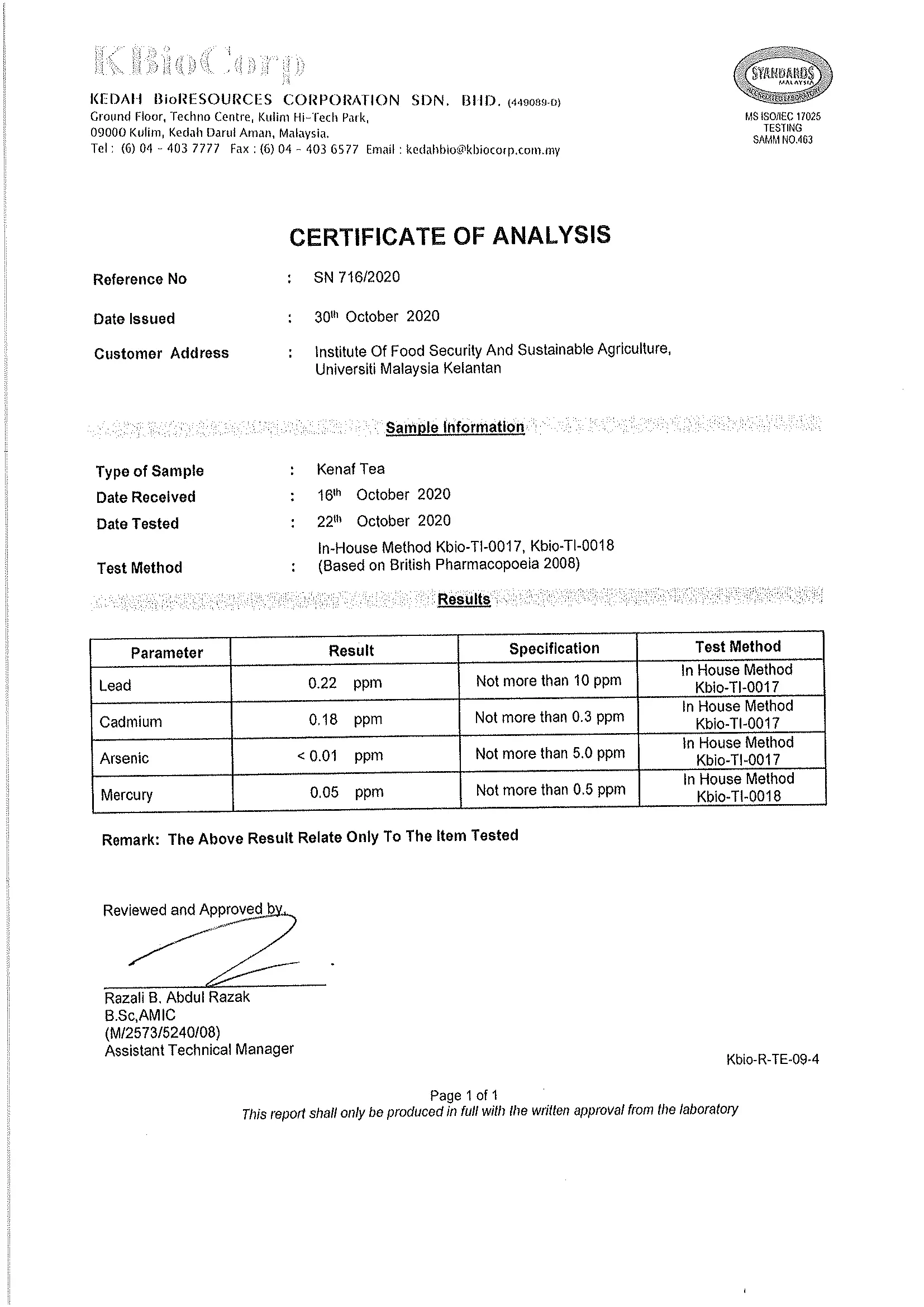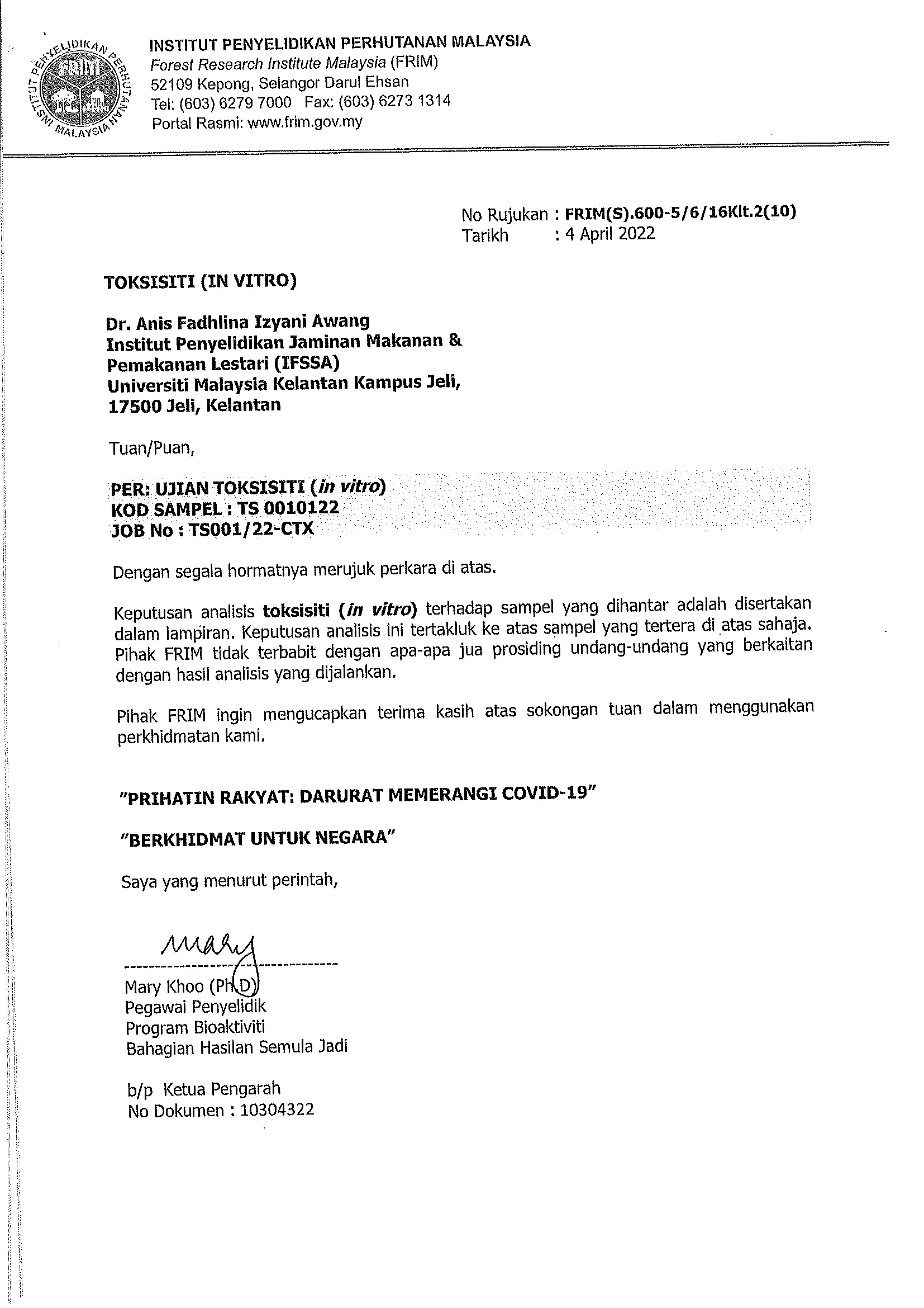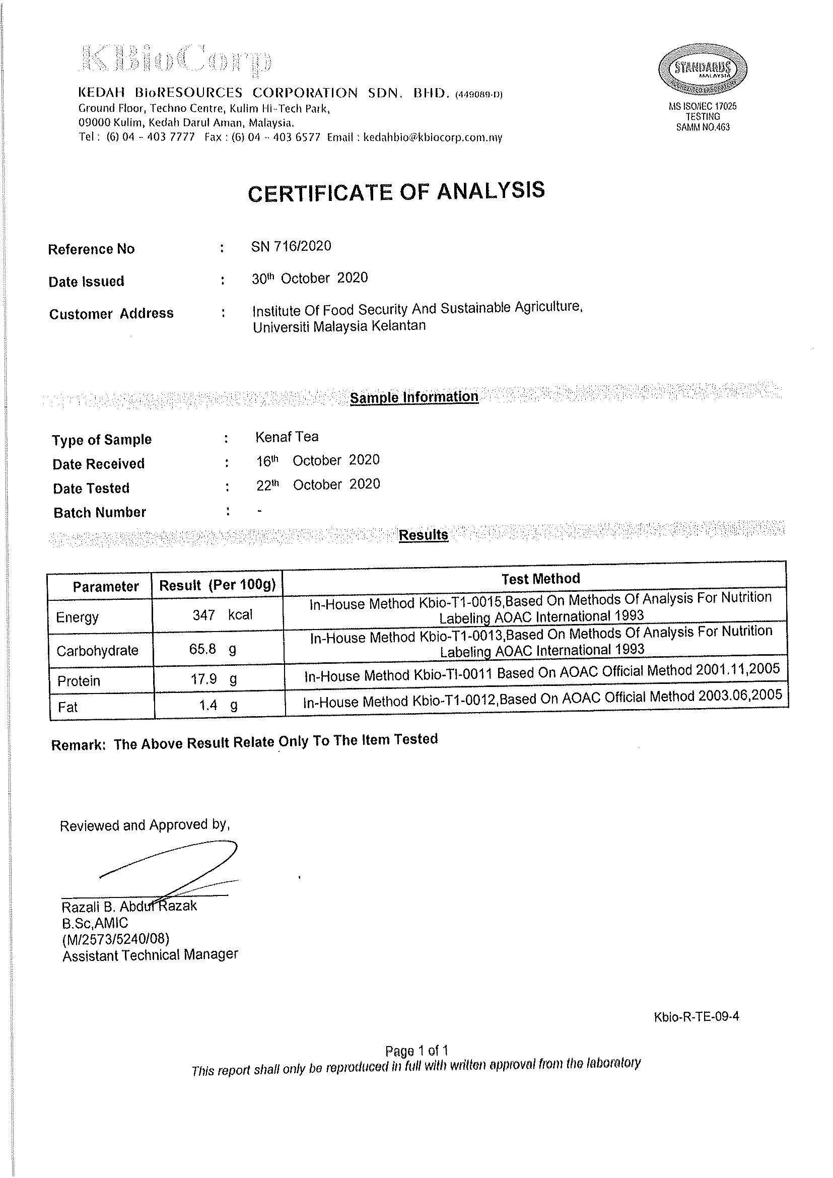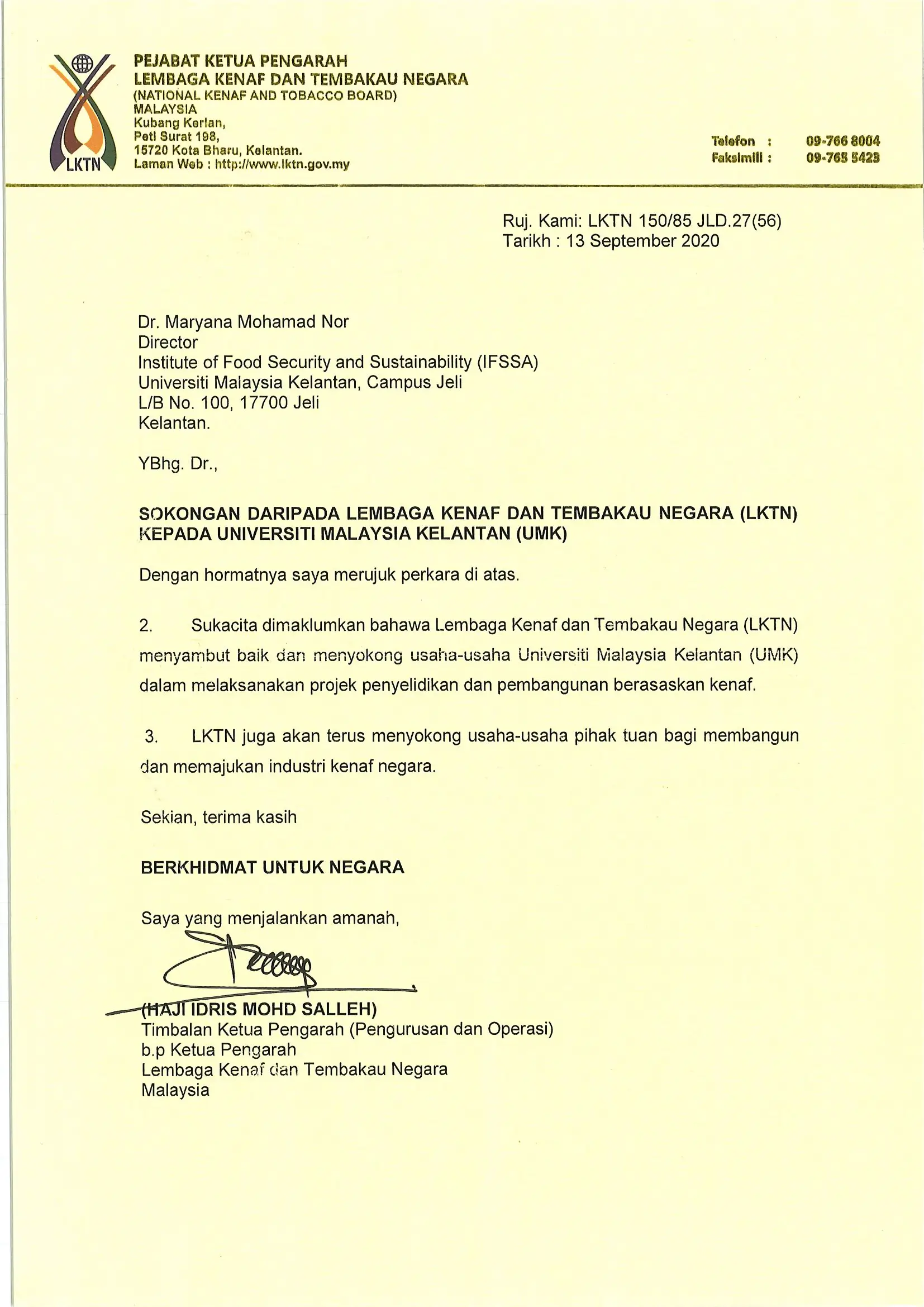 Produk Inovasi Kerjasama Lembaga Kenaf & Tembakau Negara dibawah Kementerian Perladangan dan Komoditi & Institut Penyelidikan Jaminan Makanan UNIVERSITI MALAYSIA KELANTAN